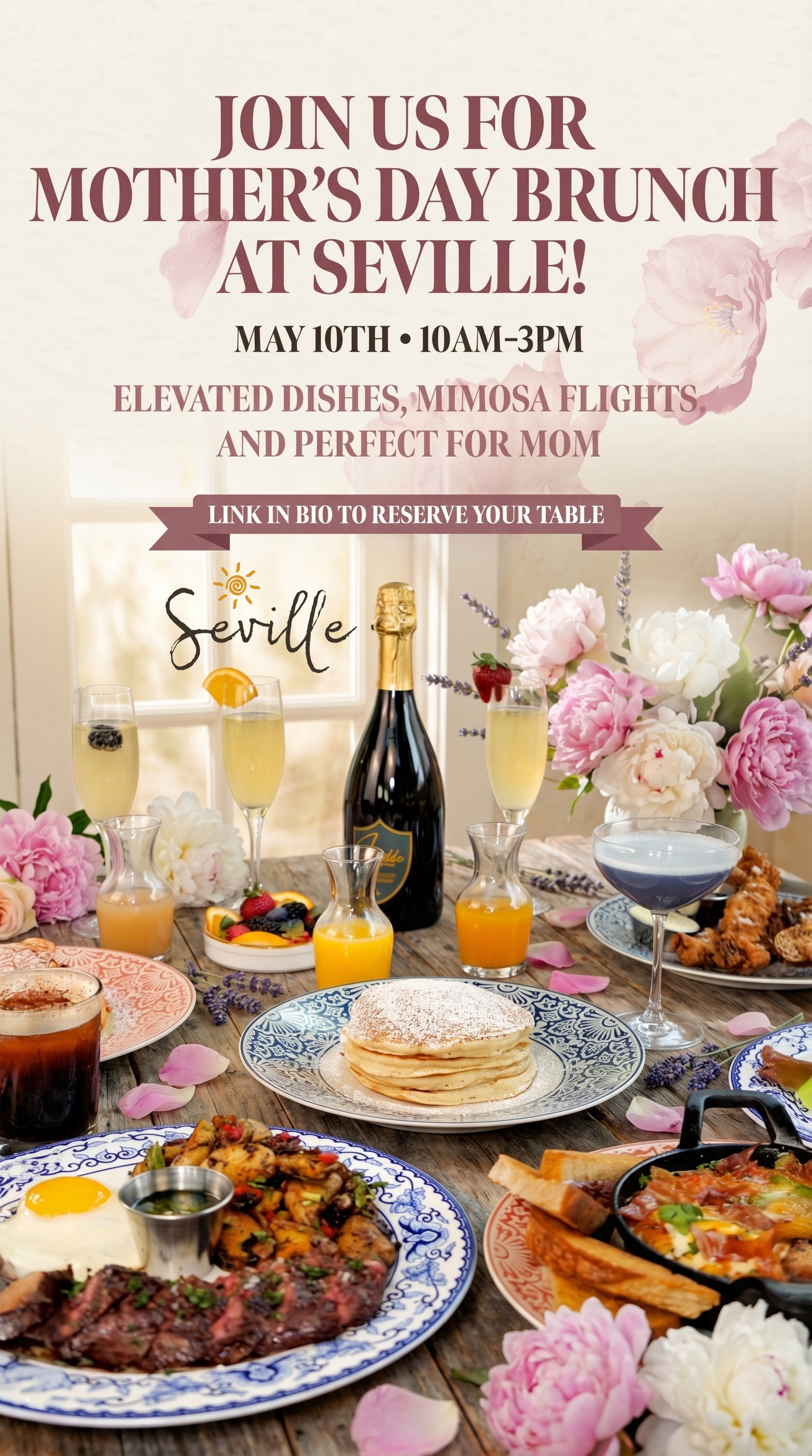 Elevated dishes, mimosa flights, and perfect for Mom.